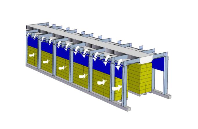增压式导风系统可将果蔬框内或箱内的热量通过压差强制快速换出,且由于是压差导风而使码货时更紧密,空间利用率更高。